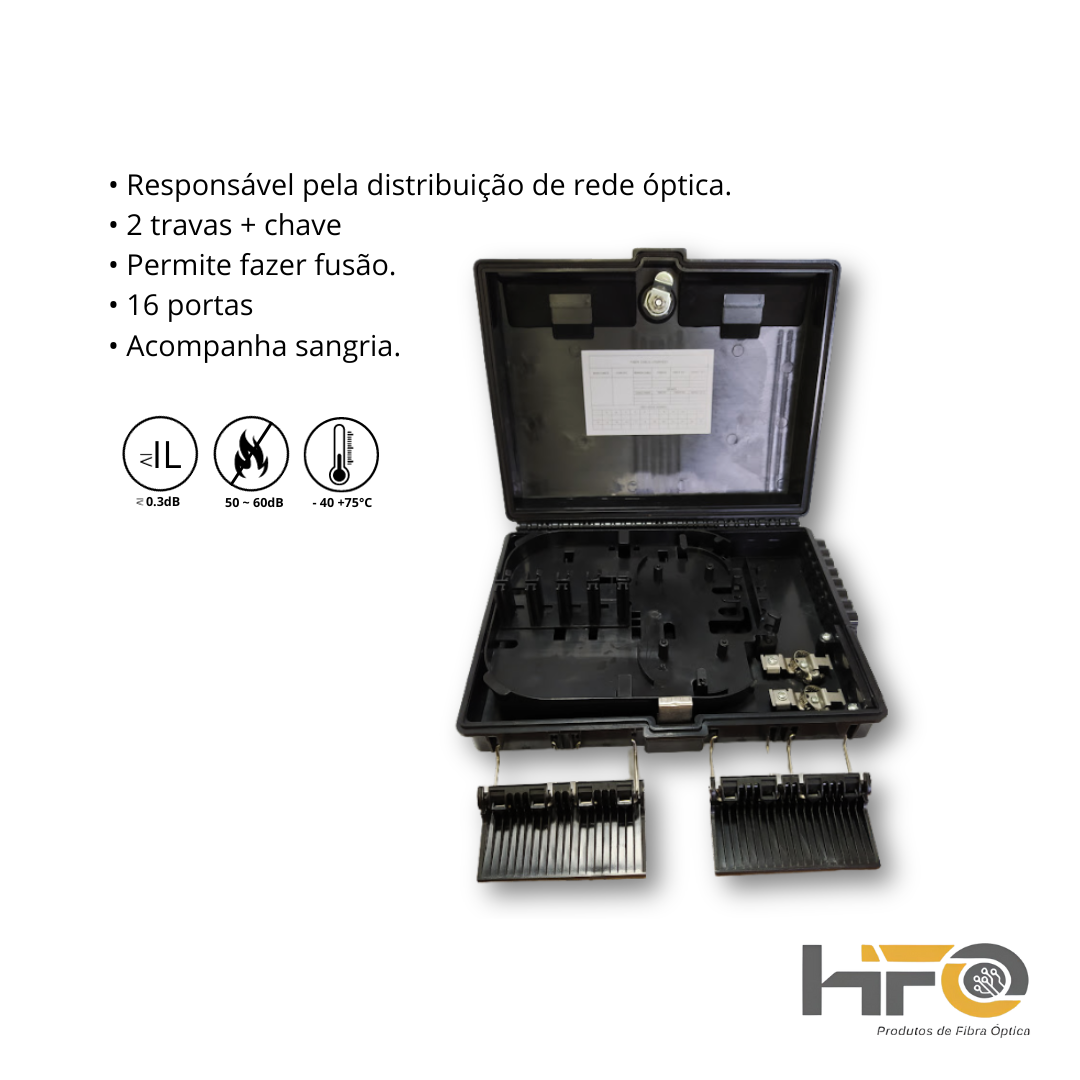Caixa de Terminação Óptica Slot FTTH 2 Travas importada com chaves 16 Portas Vazia - HFO BRASIL